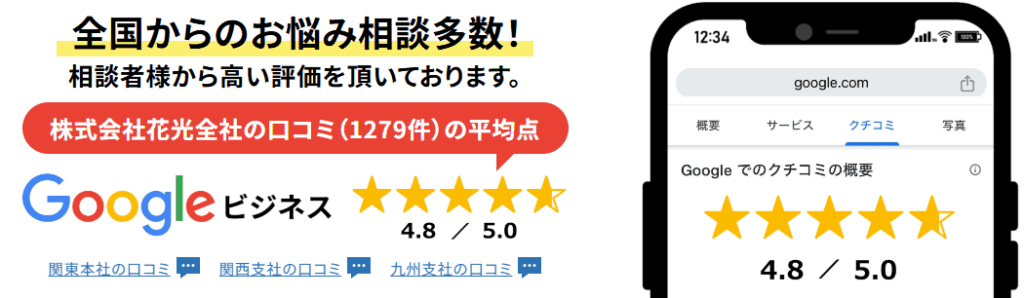 Googleビジネスで1279件のうち評価4.8(5.0満点)!
