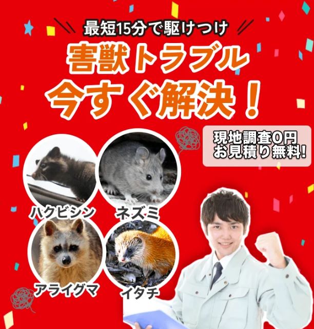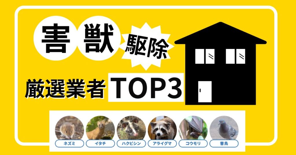 そこで今回は害獣駆除の依頼経験者の口コミや、料金・安全性・即日対応力をもとに、実績と信頼度の高い害獣駆除業者を厳選し、TOP3にまとめました。